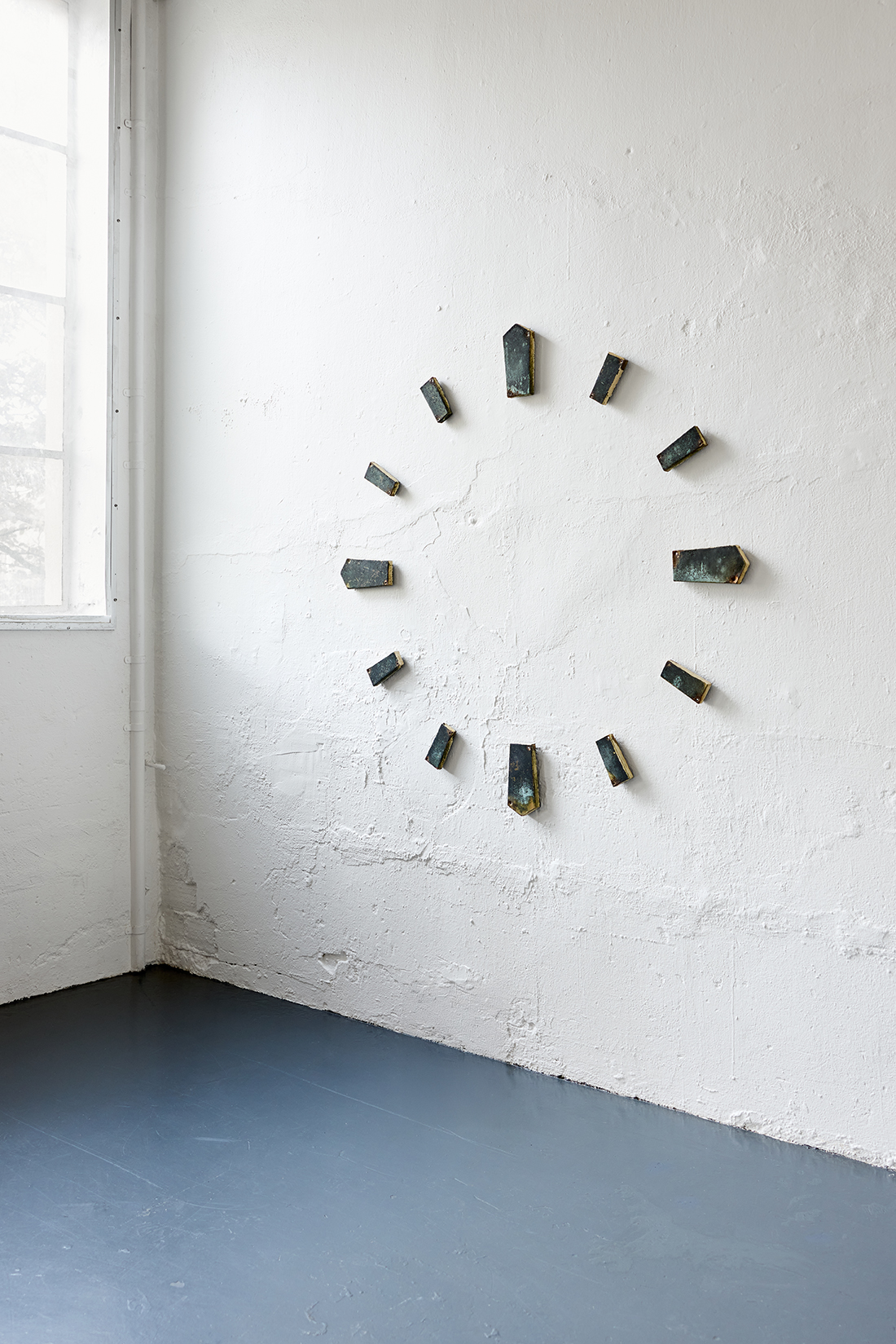 Installation, found materials from earlier exhibitions, 9 x 3 m